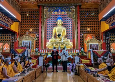 Quelques photos du premier jour de la cérémonie des Kagyu Monlam, dans le grand temple de Dhagpo Kundreul Ling.